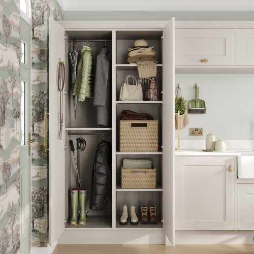 When it comes to planning the perfect storage solution, you may feel that there is simply not enough storage allocated to coats, bags, hats, scarves and shoes. Hallways become cluttered as rails, hooks and coat stands take up too much room and your space starts to look untidy. Being organised is key to leaving the house on time, especially when there are young children to get ready too. With this in mind, top of most homeowners’ wish list is a separate cloakroom. Yet for many houses, a fully dedicated cloak or boot room just isn’t possible. However, Laura Ashley by Symphony has a solution with the clever combination of a cloakroom and utility in one. The new bootility room not only provides essential storage but it also provides a separate area for laundry appliances, sink and, with direct access to the garden, it’s great for muddy boots and dogs too.