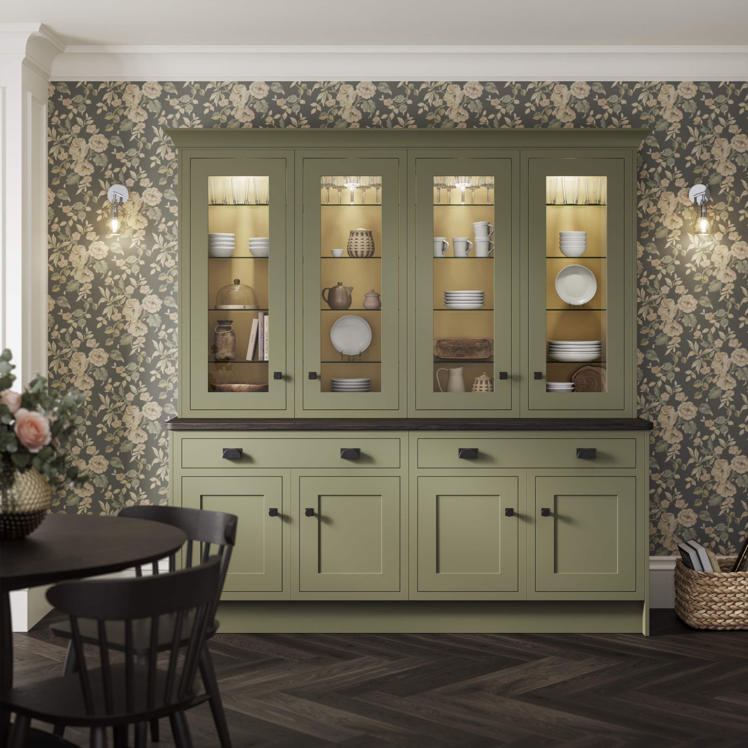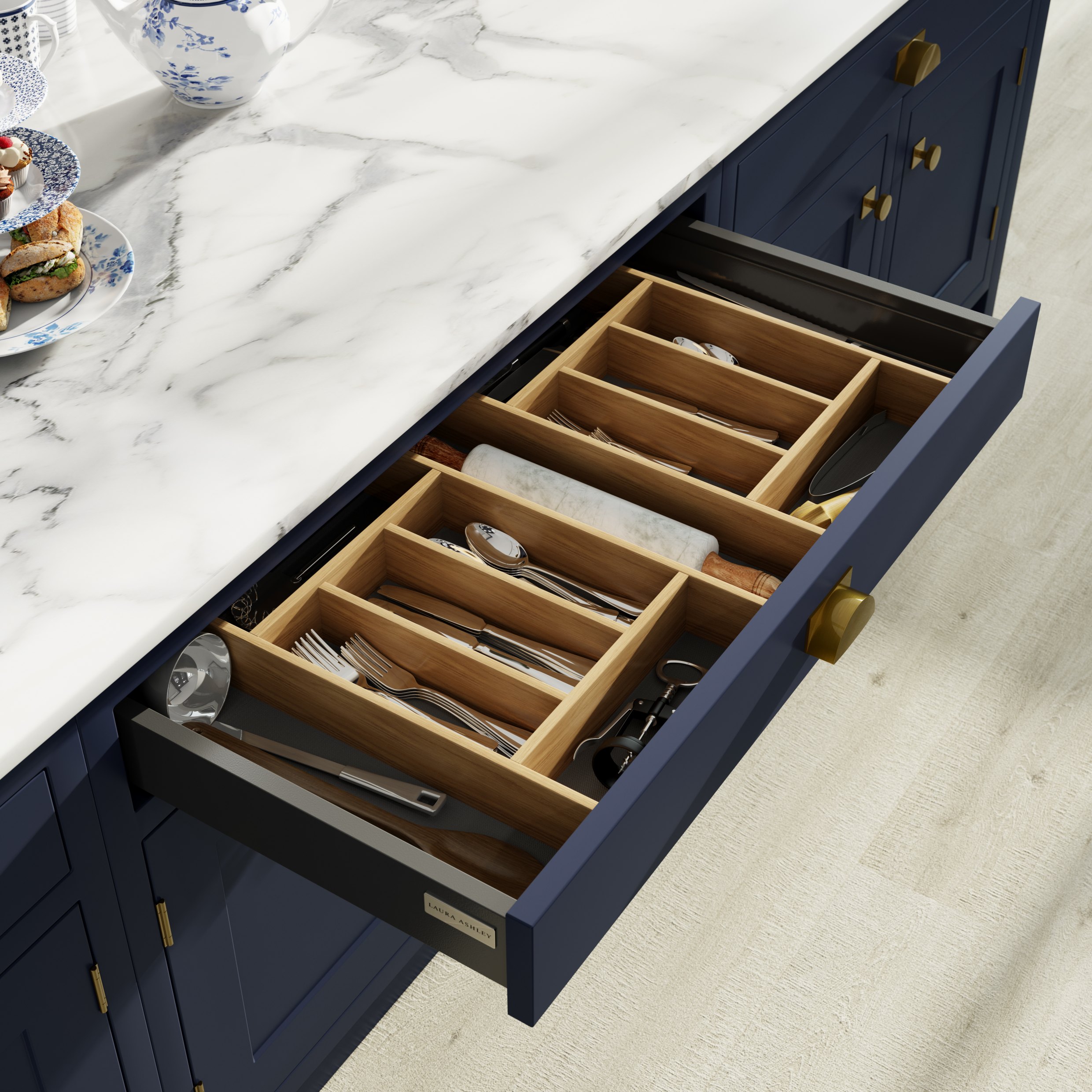 Our carefully curated colours, handles and splashbacks complement the Laura Ashley Furniture Collection.