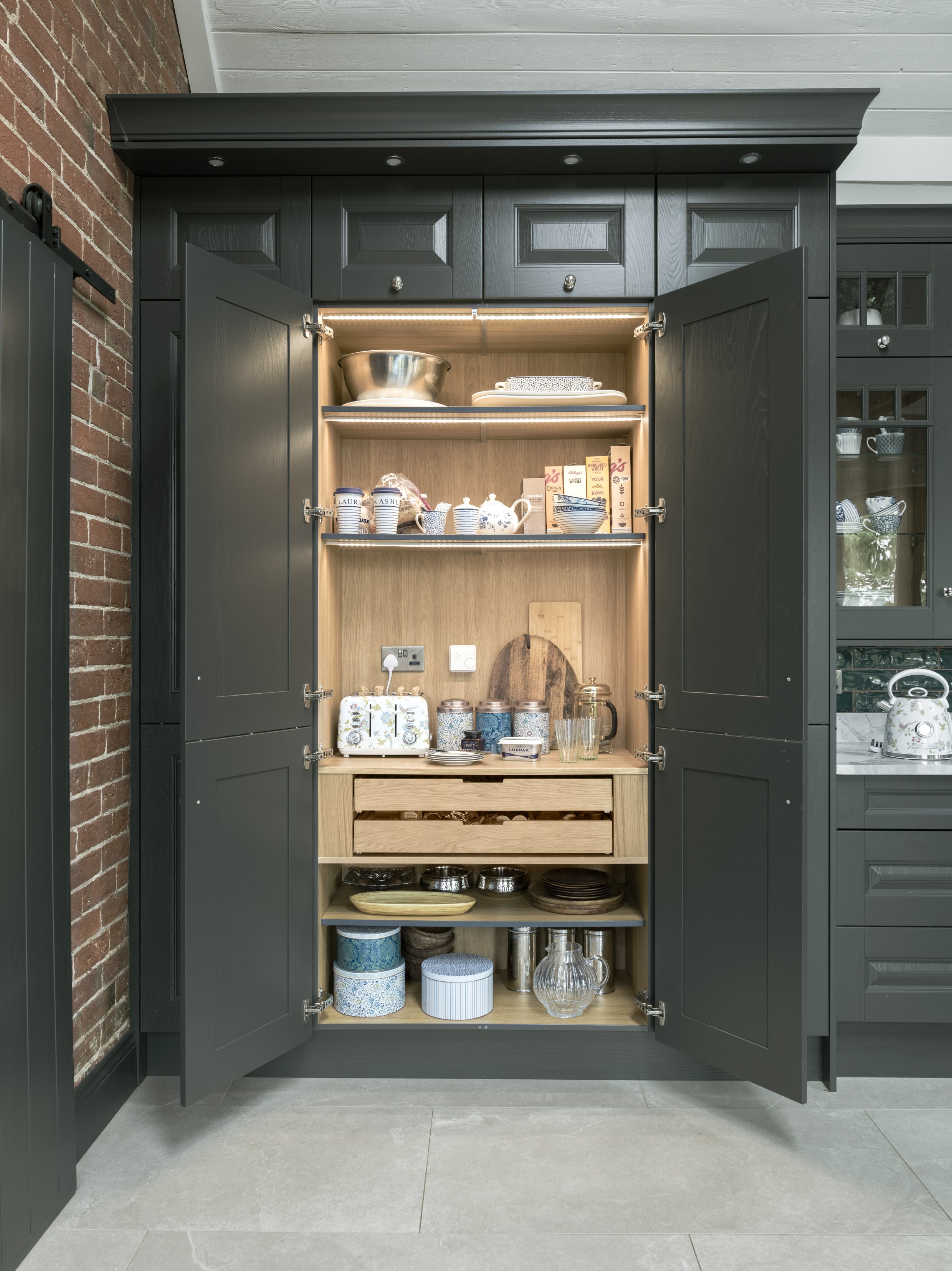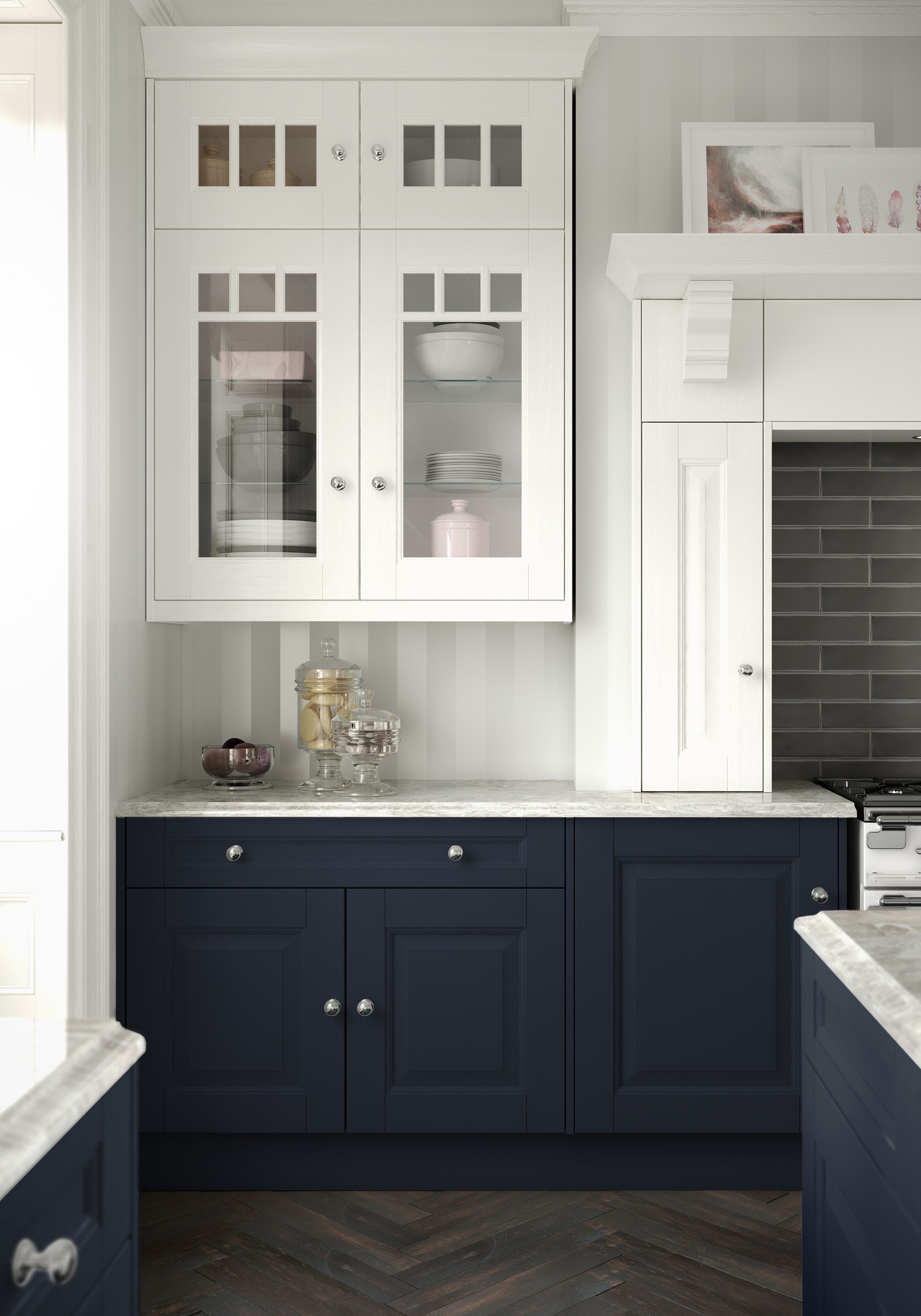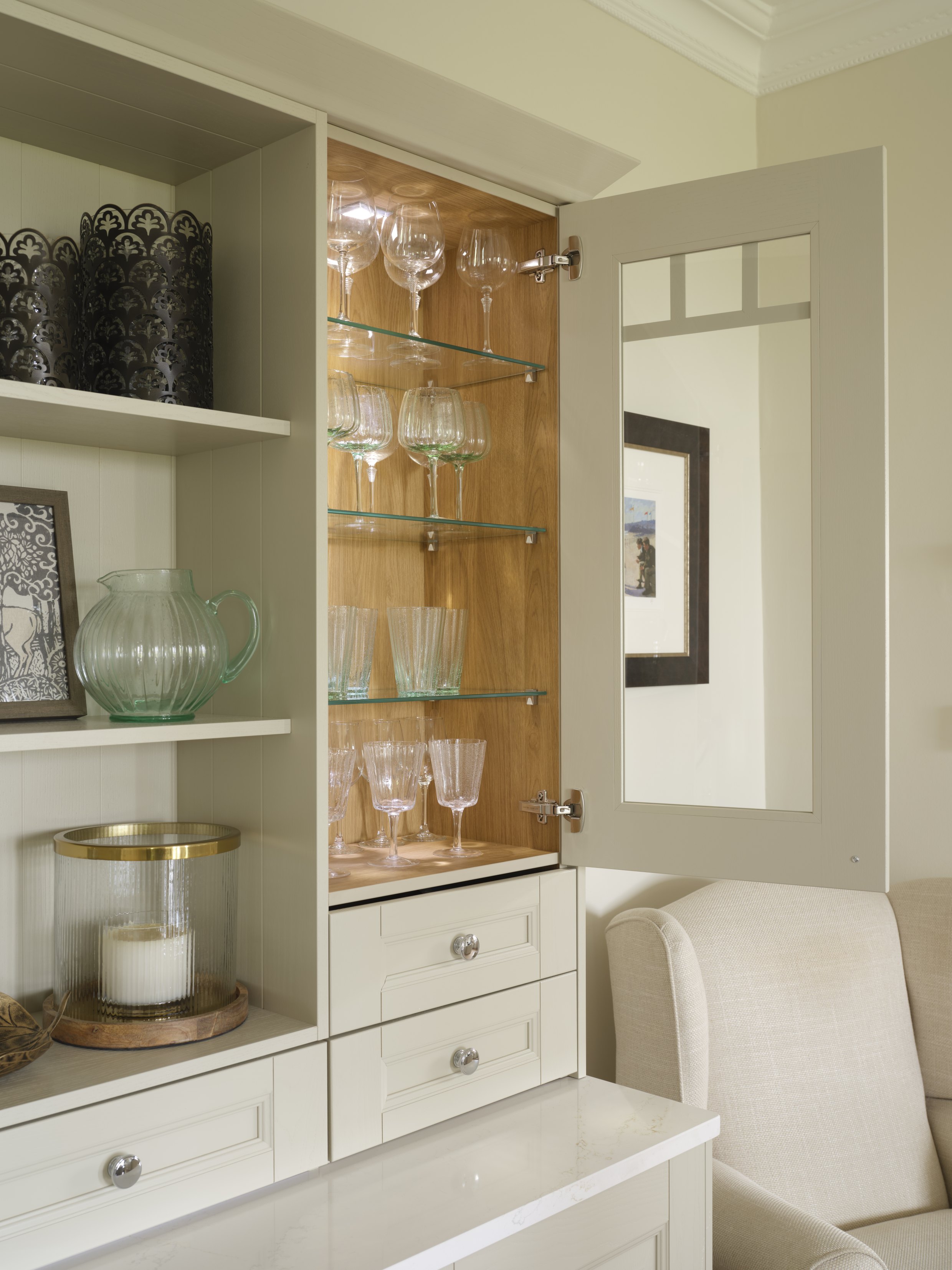 Our glazed bridging & wall cabinets add character with contrasting decors