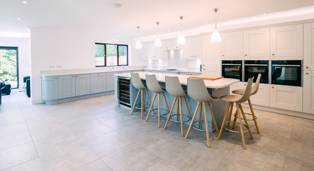 Simple and stylish, this Whitby kitchen ticks all the boxes. It incorporates lots of storage, modern and practical appliances and a beautful kitchen island with sweeping curves.